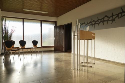 Ebenso erwähnenswert ist die Christus-Tafel in der Aussegnungshalle, die von Malermeister Ulshöfer gestiftet wurde.