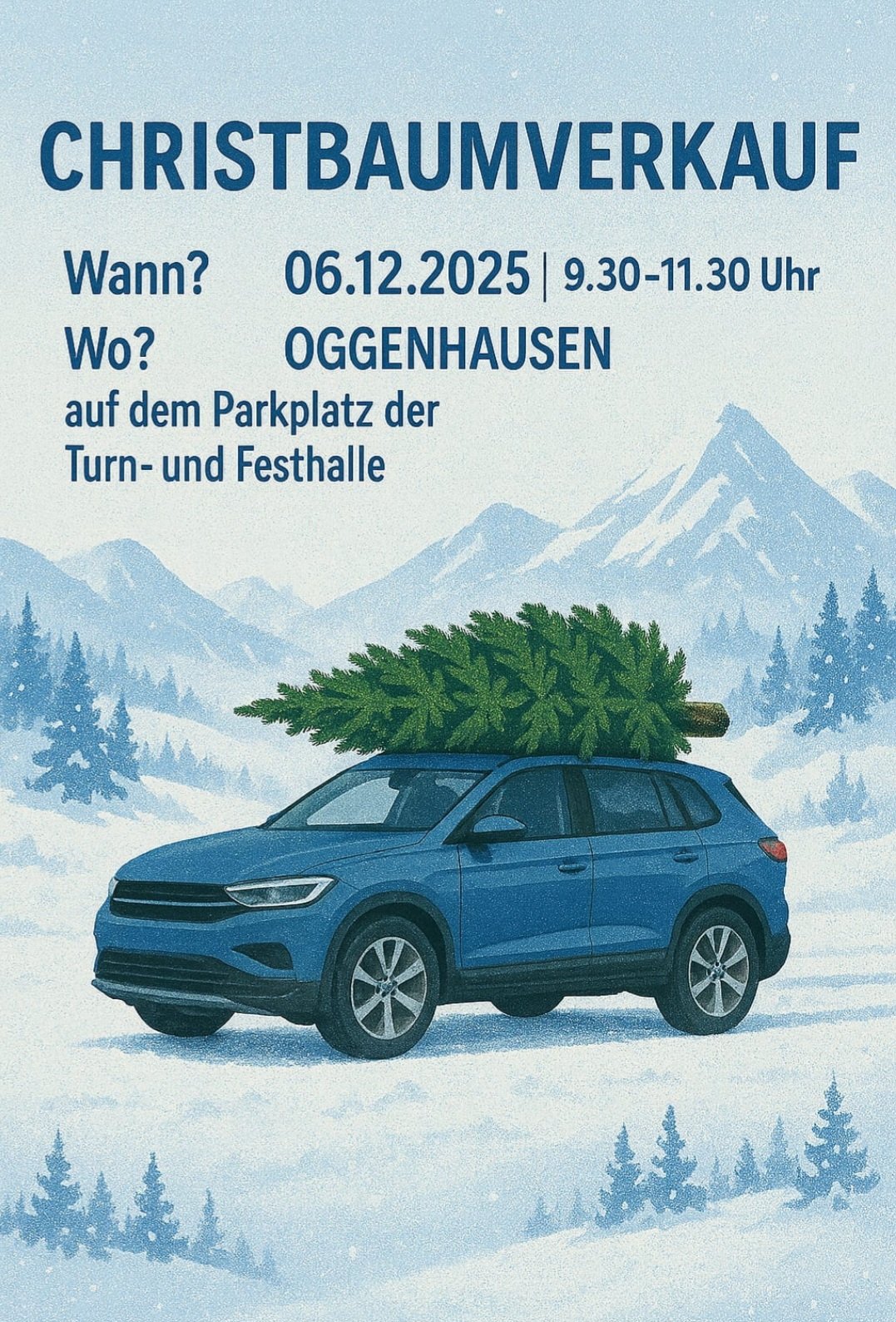 Am Samstag, den 06. Dezember 2025, laden wir herzlich zum Christbaumverkauf an der Turn- und Festhalle in Oggenhausen ein.