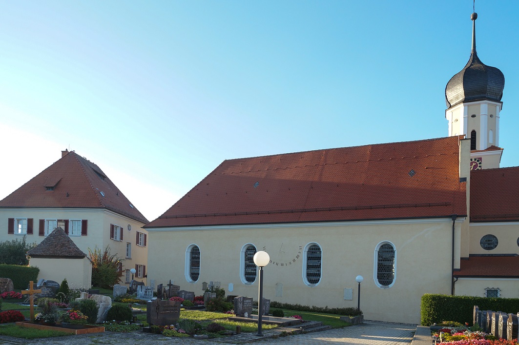 In Sichtbeziehung zum Kloster Neresheim liegt die barocke Pfarrkirche „St. Peter und Paul“, an deren Fuße der Friedhof Großkuchen sich befindet.
