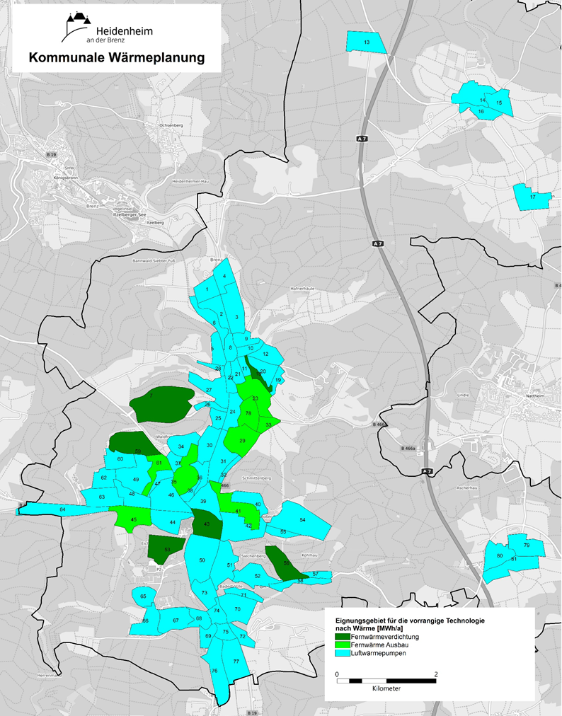 Im Ergebnis sind die Eignungsgebiete nicht als Nutzungsgebiete mit ausschließlich einer möglichen Versorgungsart zu verstehen, sondern lediglich als Areale, die eine mehrheitliche Eignung für bestimmte Versorgungsoptionen aufweisen. In den meisten Bereichen wird es neben der überwiegend geeigneten Versorgungsart auch weiterhin parallel Versorgungslösungen anderer Technologien geben, bspw. bereits vorhandene Luftwärmepumpen oder Pelletanlagen in einem späteren Fernwärme-Ausbaugebiet.