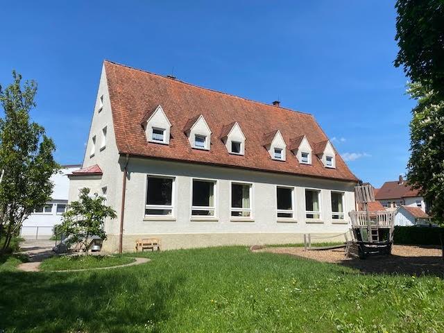 Der Kindergarten verfügt über einen großen Außenbereich und liegt zentral neben Grund- und Werkrealschule und Turnhalle.