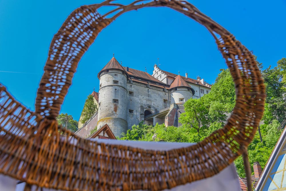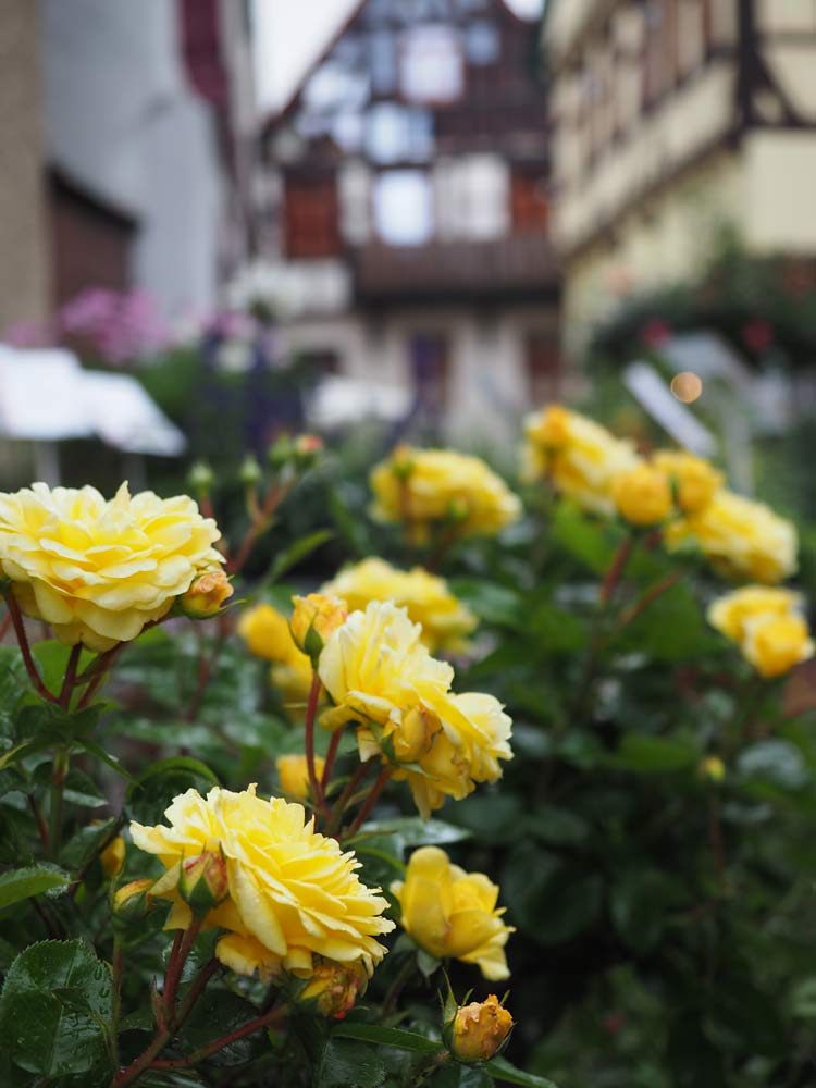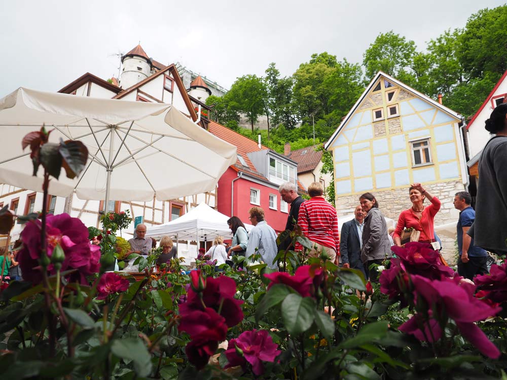 Die Hintere Gasse mit dem neu angelegten Plätzchen unter Schloss Hellenstein bildet die Kulisse für den traditionellen Rosenmarkt.