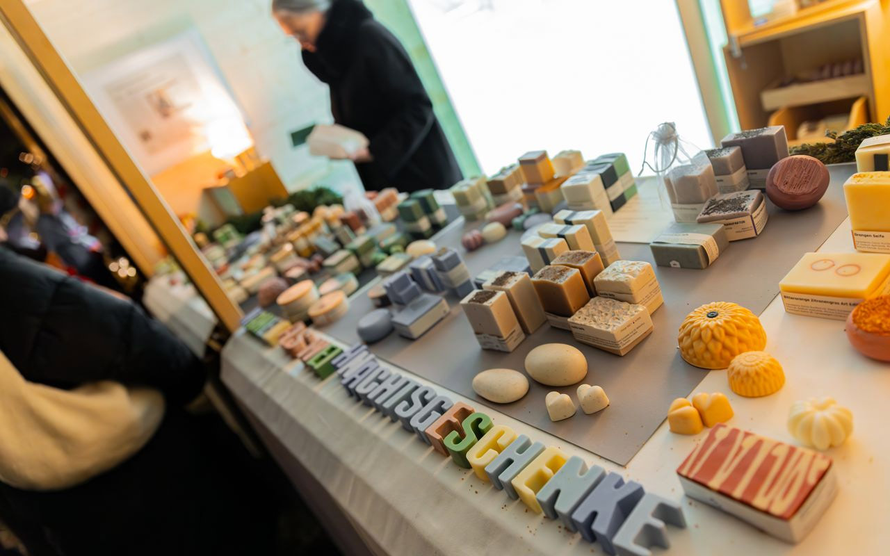 Schmuck, Gestricktes und Genähtes, Imkerei- und Schäfereiprodukte, ätherische Öle, Porzellan, Holzarbeiten, Taschen, Liköre, Marmeladen, Holzarbeiten, Blumenschmuck, Klangschalen, Bücher u.v.m.